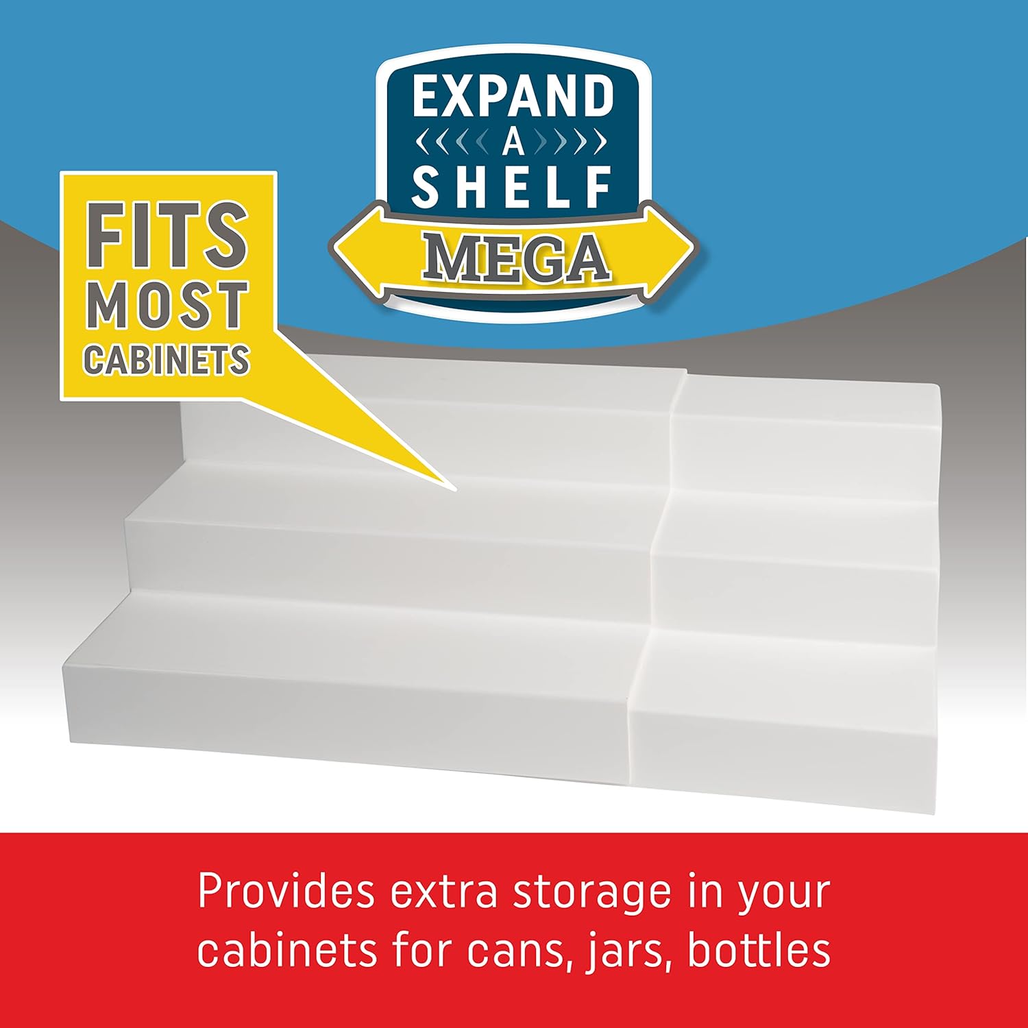This innovative shelving unit features three adjustable tiers, allowing you to customize the shelf heights to accommodate cans of various sizes. Say goodbye to cluttered shelves and wasted space – the Expand A Shelf Mega ensures that every can is easily accessible and visible.